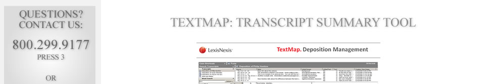 TextMap is our transcript summary tool, and was designed to work with CaseMap, our case analysis application. TextMap 5.5 works even better with CaseMap than our earlier versions but it also works independently of CaseMap. TextMap 5.5 gives you easy, flexible ways to link transcripts from case depositions, examinations, and other proceedings to case exhibits and other documents and the ability to play deposition video synched with text.